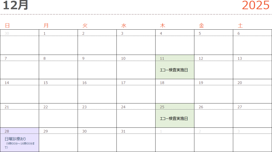 令和7年12月の日曜診療日のお知らせ