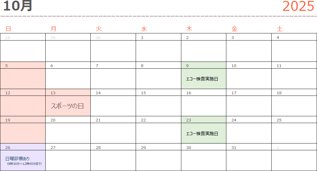 令和7年10月、11月、12月の日曜診療日のお知らせ
