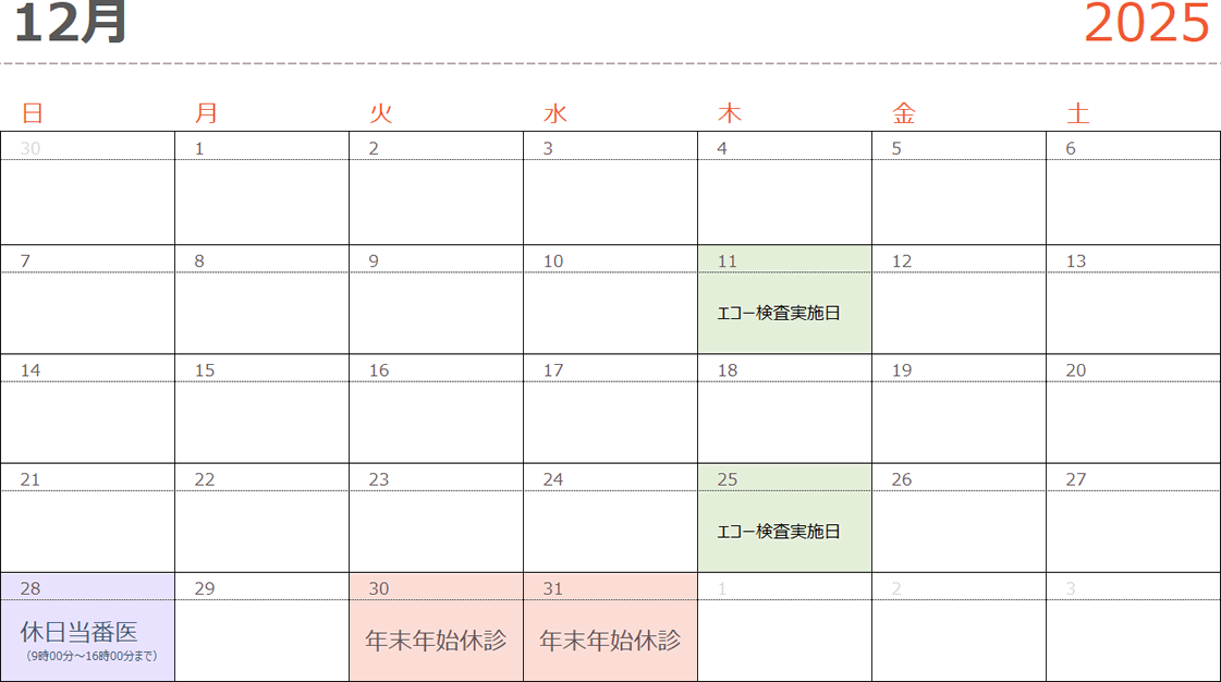 令和7年12月の日曜診療日のお知らせ